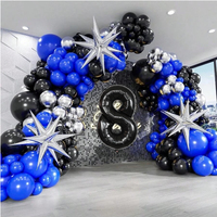 Azul marino Metal Azul Plata Ágata Globo negro Conjunto arqueado Fiesta de cumpleaños para niños Escena de boda